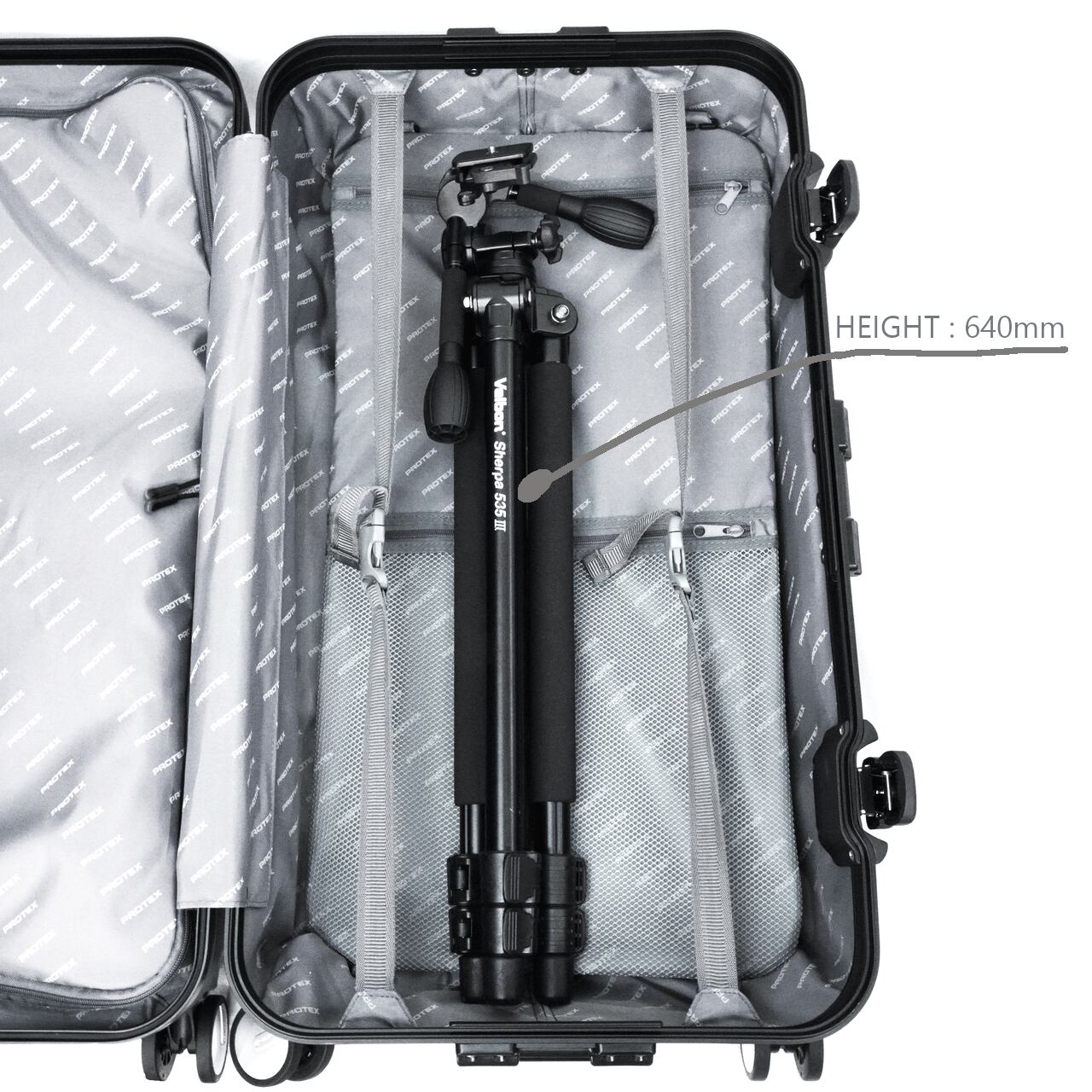 ・長期トラベルや長尺の荷物収納に適した容量77Lの縦長キャリーバッグ