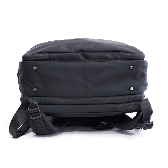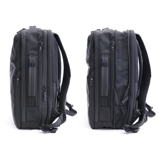 「リュックは途中でものを取り出しづらい」という弱点をデザインでカバーする仕様は以前のモデルから変わらず、折りたたみ傘やペットボトルはサイドから取り出し、