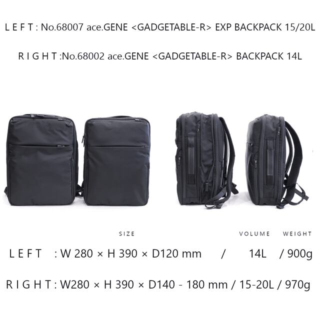 NAME:ace.GENE「GADGETABLE-R」EXP BACKPACK 15/20L