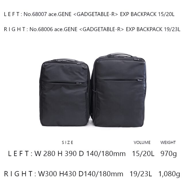 ace.GENE「GADGETABLE-R」EXP BACKPACK 19/23L <BLACK>