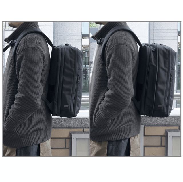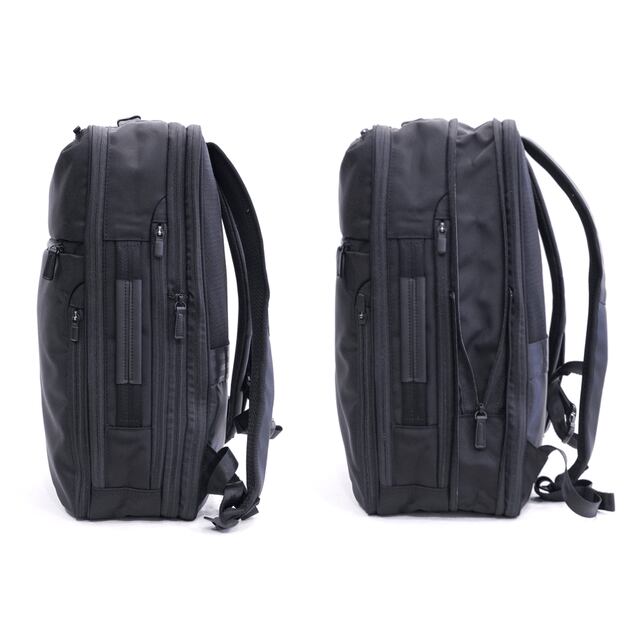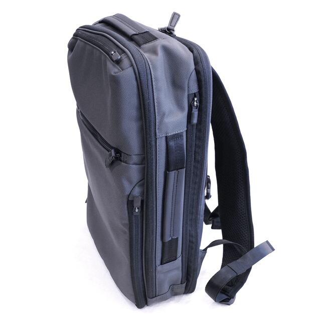 「リュックは途中でものを取り出しづらい」という弱点をデザインでカバーする仕様は以前のモデルから変わらず、折りたたみ傘やペットボトルはサイドから取り出し、