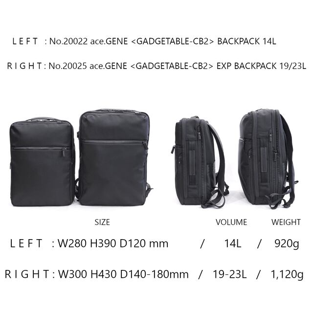 ace.GENE「GADGETABLE-CB2」EXP BACKPACK 19/23L <BLACK>