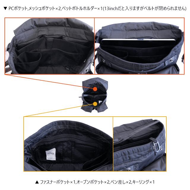 ・A4サイズや13inchPC対応(13inchPCはポケットに入りますがベルクロが締まりきりません)