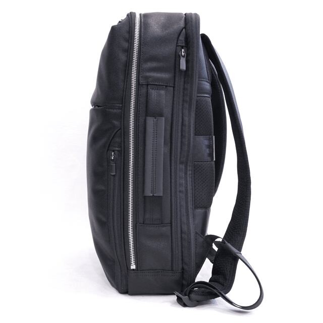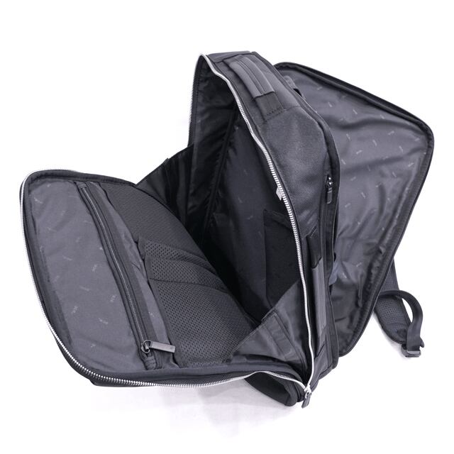 「リュックは途中でものを取り出しづらい」という弱点をデザインでカバーする仕様は以前のモデルから変わらず、折りたたみ傘やペットボトルはサイドから取り出し、