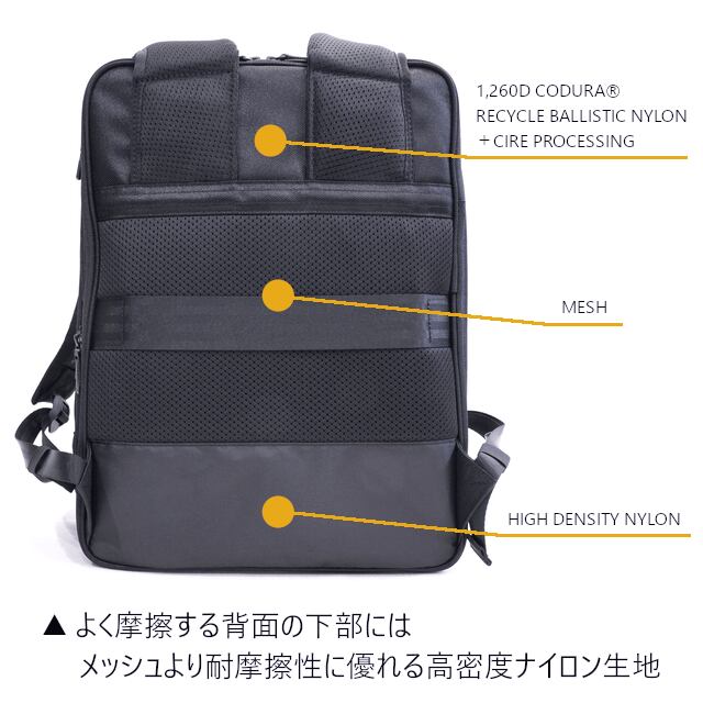 ・光沢とコシがあるROBIC社製のリサイクルナイロン生地を採用したリュック