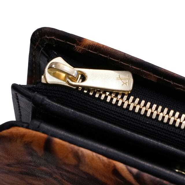 その染色方法をレザーに用いた画期的なコンパクト財布です